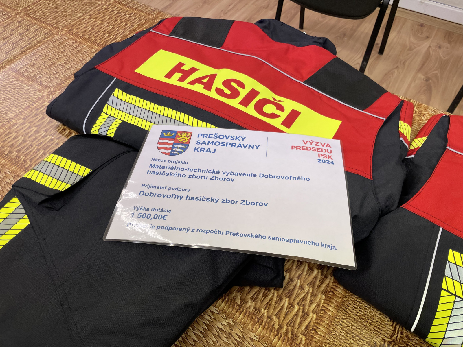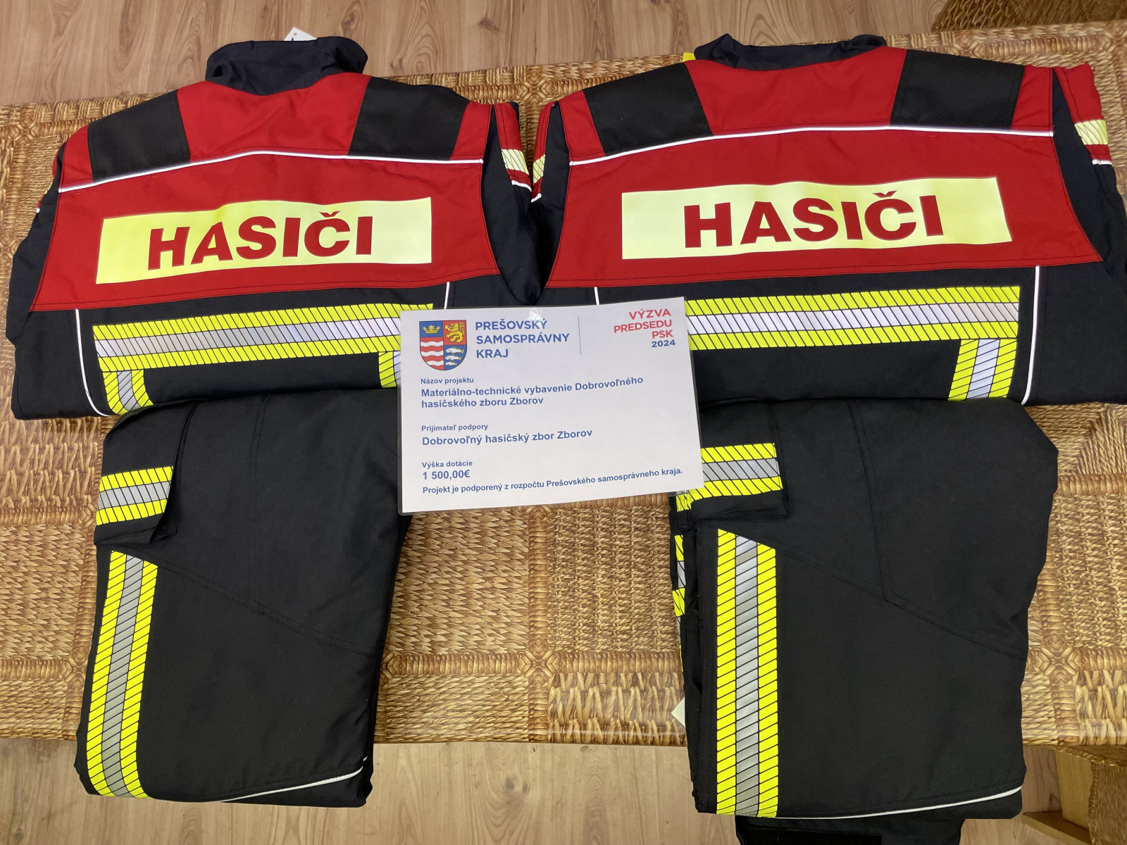 Vďaka finančnej podpore vo výške 1500 € z výzvy predsedu Prešovského samosprávneho kraja (PSK) sme mohli zakúpiť dva komplety viacvrstvových zásahových oblekov DEVA Red Fox, ktoré poskytnú potrebnú ochranu našim hasičom pri zásahoch v mimoriadnych situáciách.