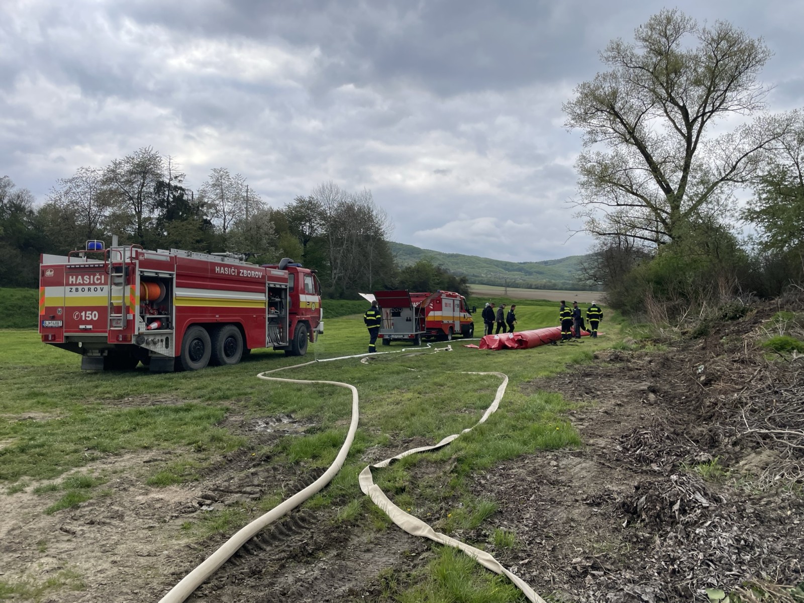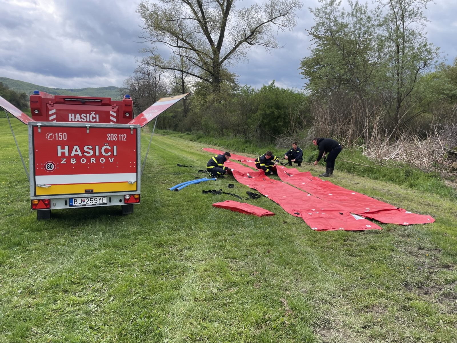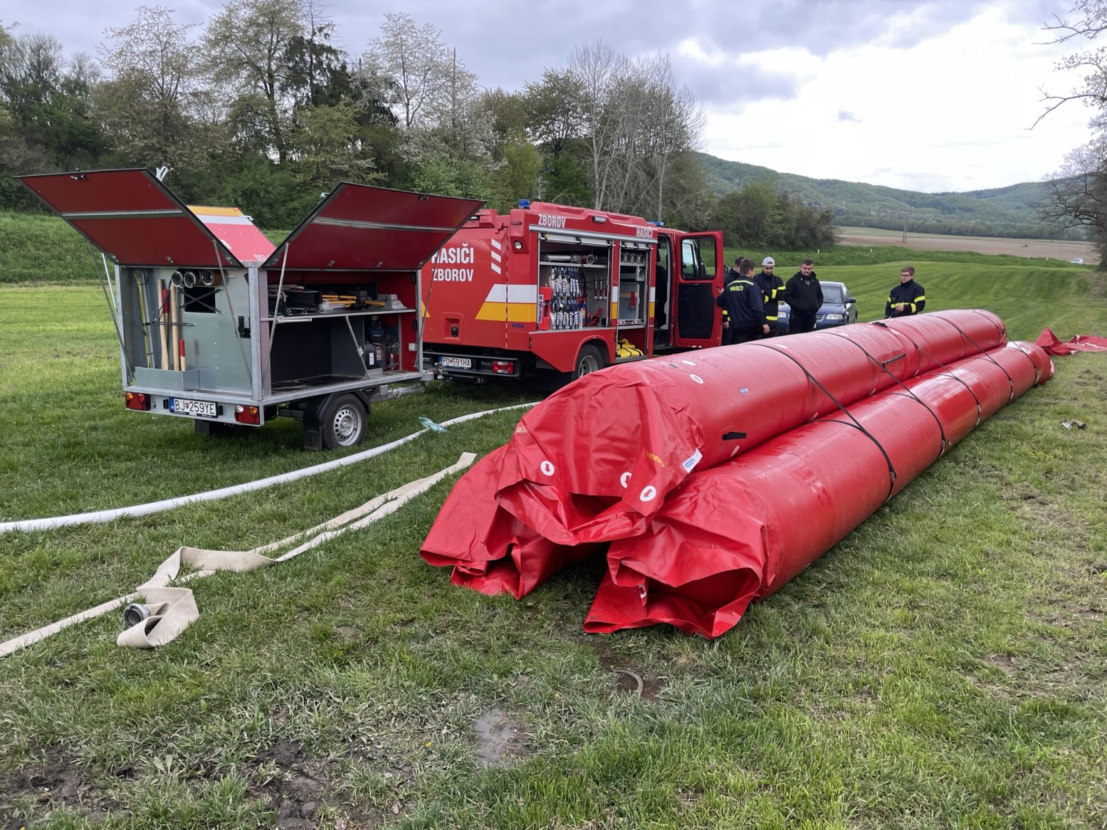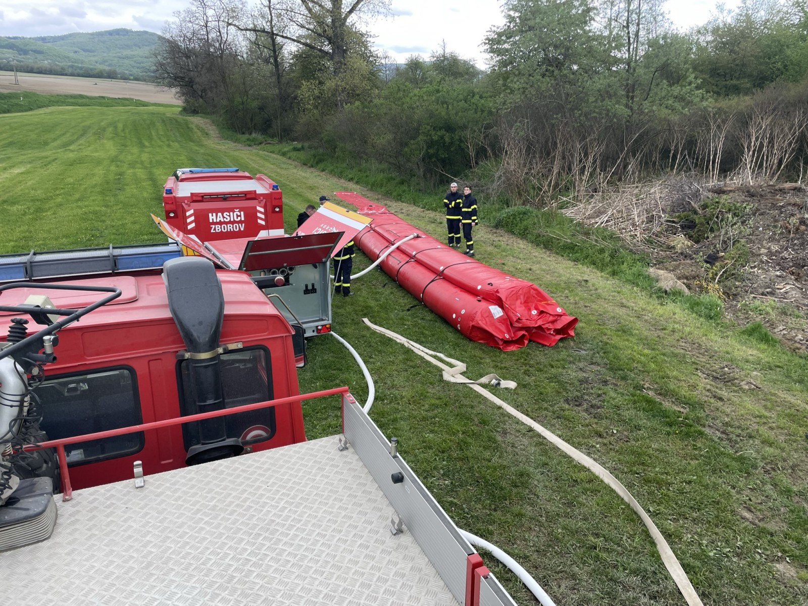 Okrem výstavby protipovodňových bariér sme novým členom jednotky predviedli možnosti hasenia, ako aj stavbu útočného a sacieho vedenia. Taktiež sme im ukázali, ako používať prúdnice a lafetu, správny postoj pri hasení, plnenie zásahových vozidiel z podzemného hydrantu, prácu s genfo vakmi a ako komunikovať pomocou RDST (rádiostaníc) a optických signálov.